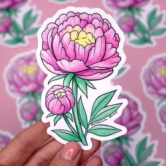 Peony Sticker - Indiana State Flower - Waterproof Vinyl