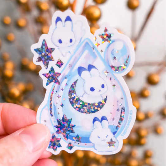 Moonstone and Bunnies Sticker - Holographic - Waterproof Vinyl