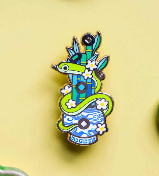 Snake Enamel Pin - Limited Edition - Five Lucky Bamboo - Year of the Snake