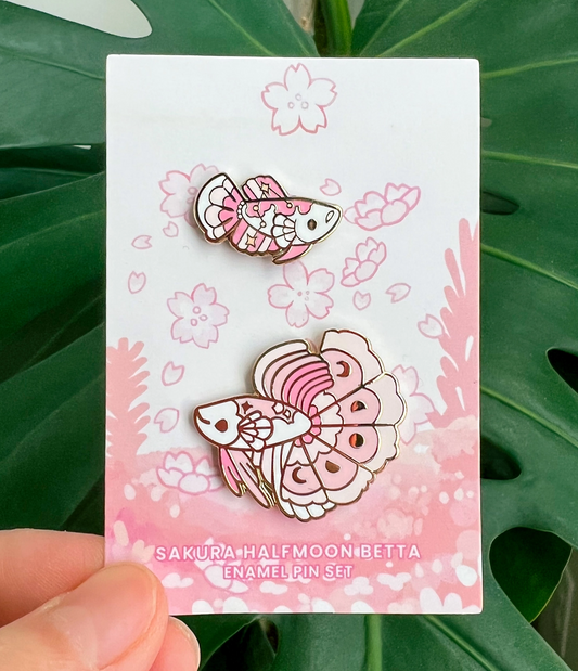 Betta Fish Enamel Pin Set - Sakura Halfmoon