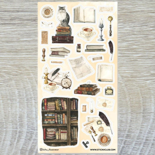 Bookish Haven Stickers - Vintage Library, Books, & Office Sticker Sheet