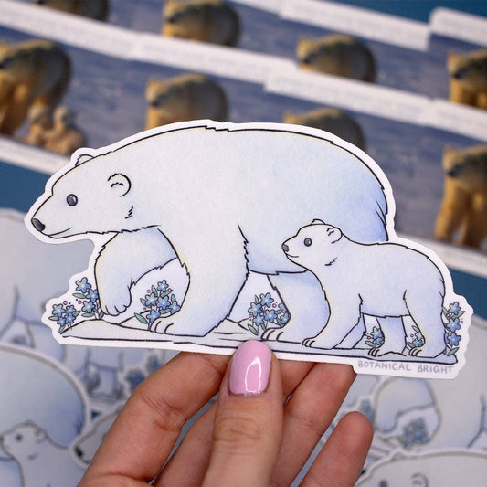 Polar Bear with Cub Sticker - Waterproof Vinyl Winter & Wildlife Decal