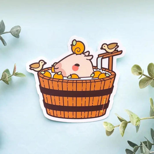 Curly Lounging in a Spa Bucket Sticker - Clear Vinyl