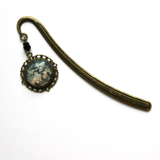 Haunted Tree Gothic Bookmark - Halloween - Bronze and Glass Cabochon Book Hook