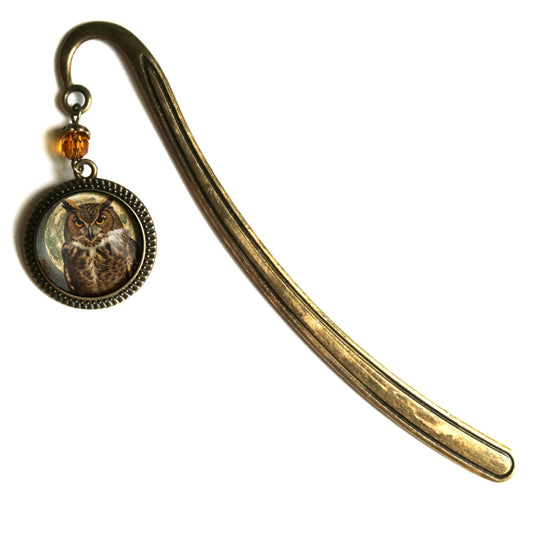 Victorian Owl Bookmark - Halloween - Bronze and Glass Cabochon Book Hook
