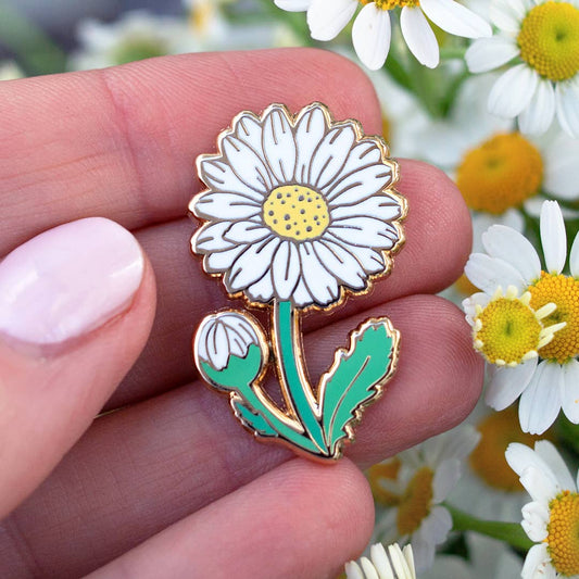 Daisy Enamel Pin - April Birth Flower - Gold Plated Base