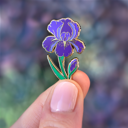 Iris Enamel Pin - February Birth Flower - Gold Plated Enamel