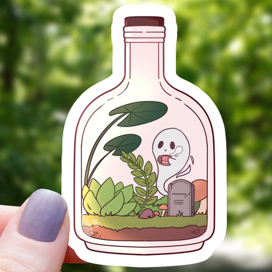 Ghost in a Bottle Terrarium Sticker - 3" Waterproof Vinyl Decal - Halloween