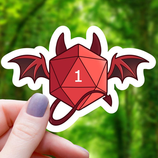 Critical Fail Devil Polyhedral D20 Dice Sticker - 3" Waterproof Vinyl Decal