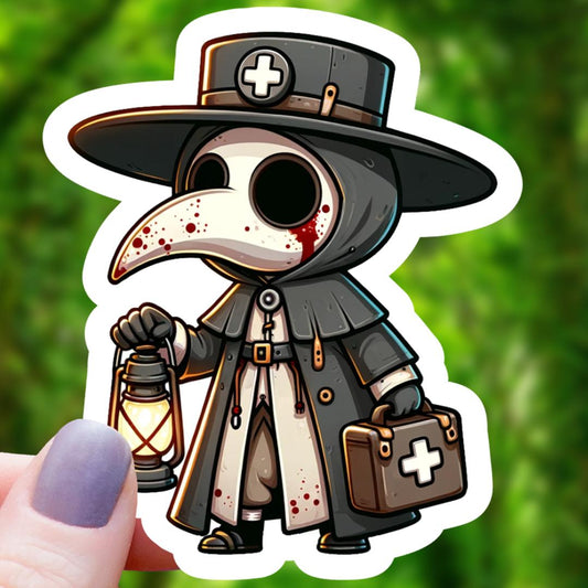 Chibi Plague Doctor with Lantern Sticker - 3" Waterproof Vinyl Sticker