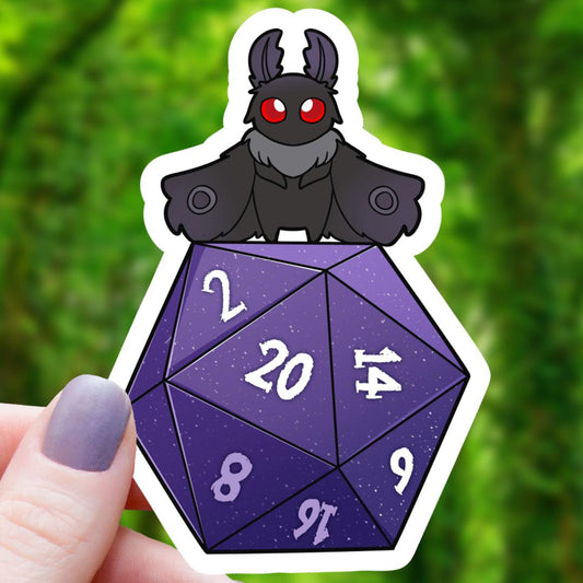 Mothman on Polyhedral D20 Dice RPG Sticker - 3" Waterproof Vinyl Sticker