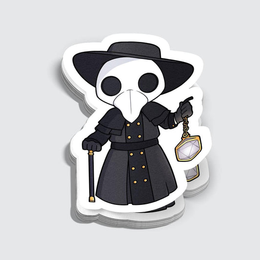 Chibi Plague Doctor with D20 Lantern Sticker - 3" Waterproof Vinyl Decal
