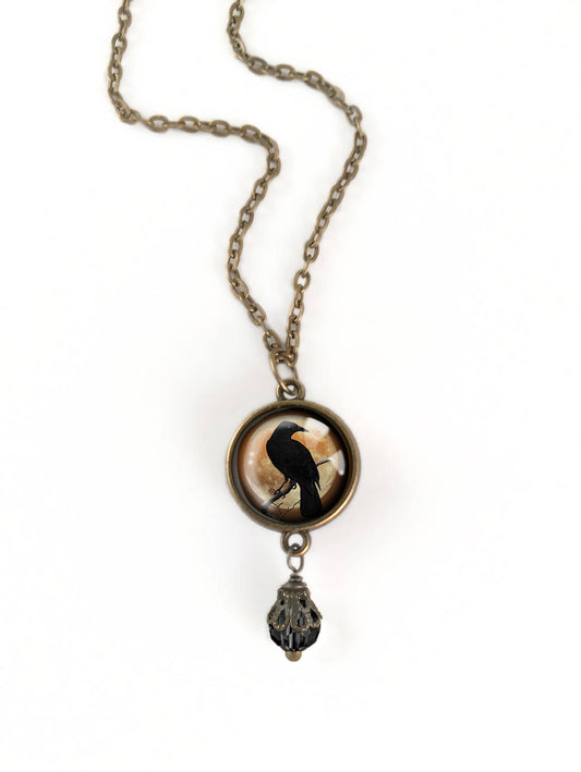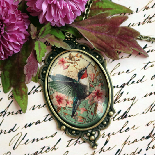 Hummingbird Ornate Necklace - Art Nouveau - Glass Cabochon