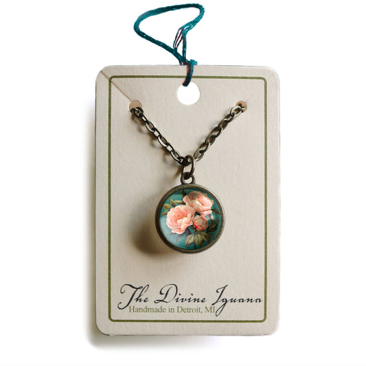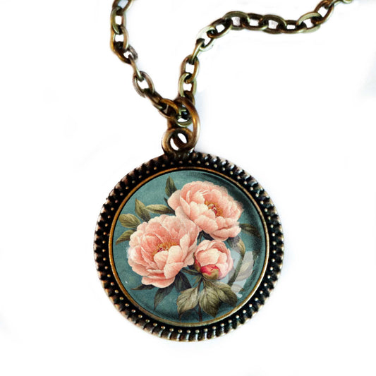 Pink Peony Pendant Necklace - Spring - Cottage Core - Indiana State Flower