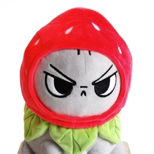 Angry Cat Plush - Grey Tabby - with Strawberry Hat that Fits Real Cats!