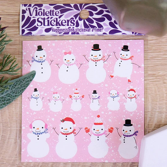 Pink Snowmen Stickers - 2 Winter & Christmas Sticker Sheets