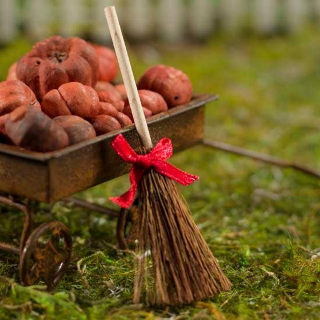 3-1/2" Miniature Natural Straw Broom with Bow - Halloween & Fall Crafts - 1 Broom