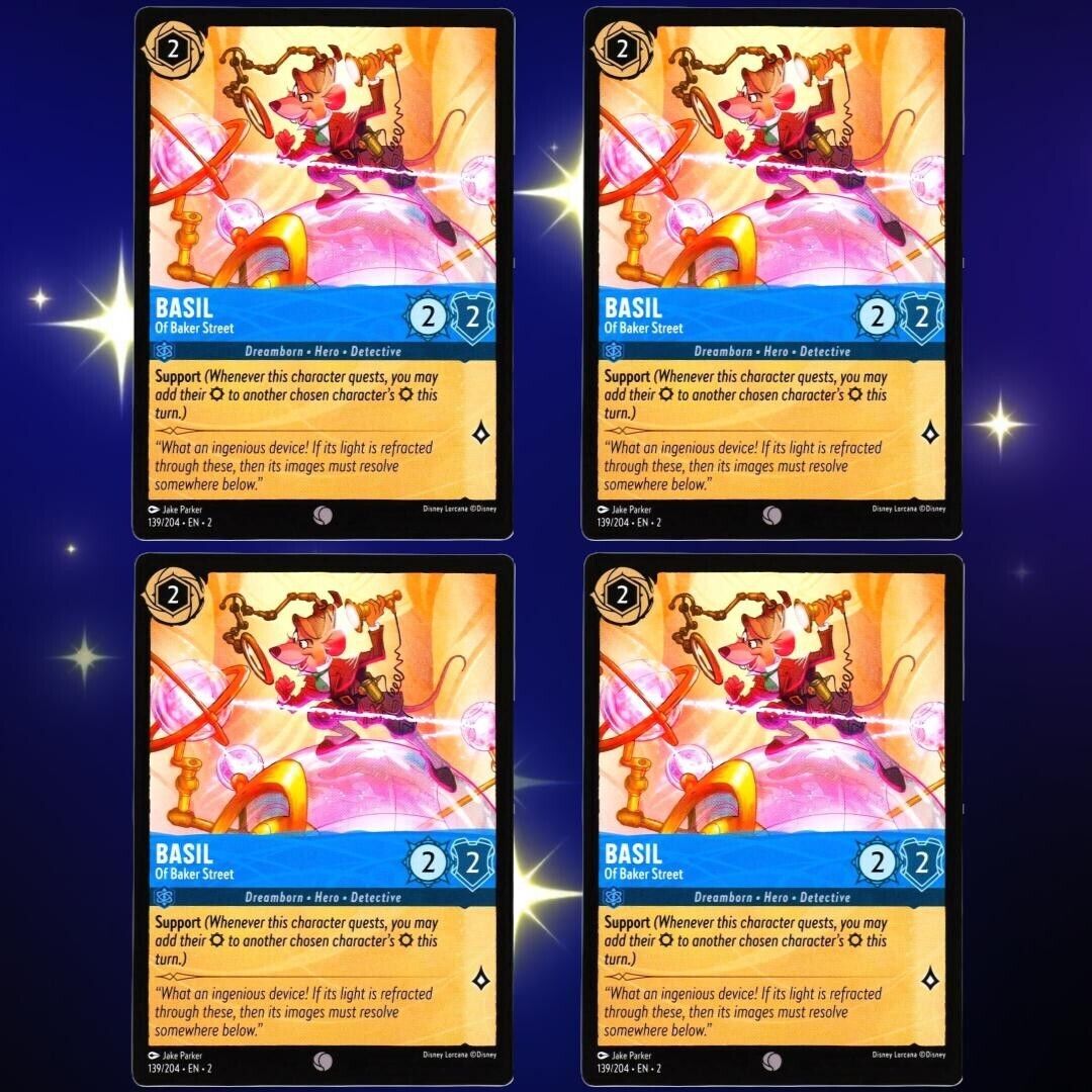 4x Basil of Baker Street - Disney Lorcana TCG Rise of the Floodborn #139/204