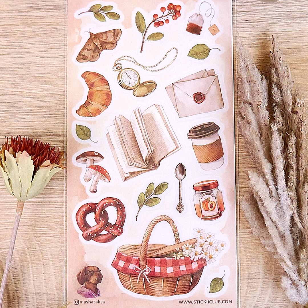 Autumn Picnic Stickers - Food, Books, and Nature Sticker Sheet