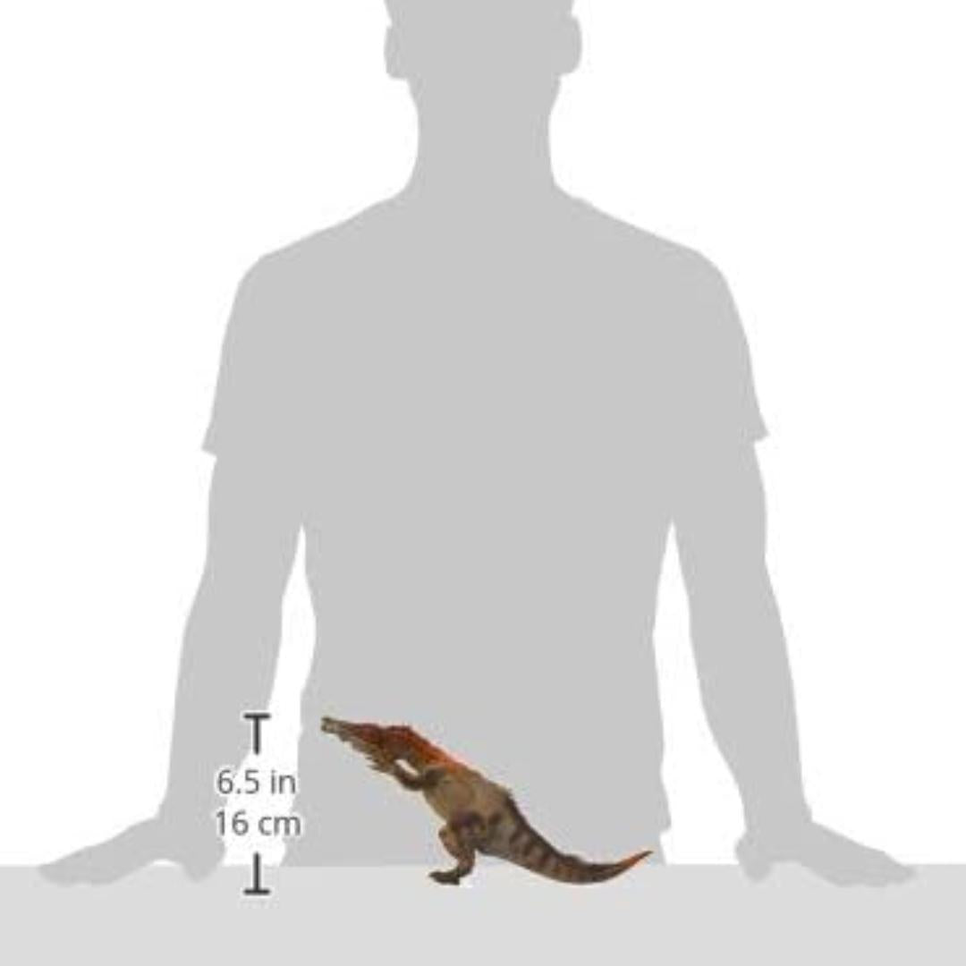 Remarkable with its rough ridge, its orange tail and its big claws, the Baryonyx has a fierce air. PAPO has detailed to perfection, his little horn, his skull long and narrow, his nostrils located behind. This carnivore did not go unnoticed! With large serrated teeth, he could stab the soft-fleshed fish that he caught with his large claws and long snout, allowing him to breathe underwater. His name comes from his impressive claw located at the thumb, that he did not hesitate to go out on the lookout for the least prey. His front legs are much smaller than his powerful hind legs.