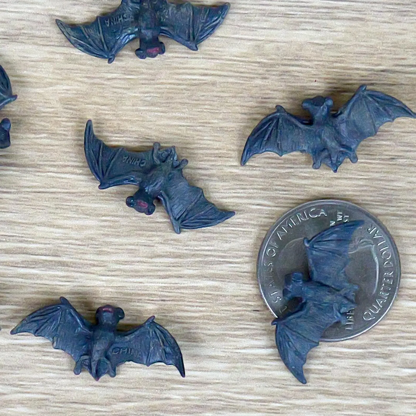 This listing is for one 1" inch miniature bat figure, perfect for Halloween or creepy crafts! Due to being hand painted, each animal figure may look slightly different. They are a combination of grey, brown, and black colors.