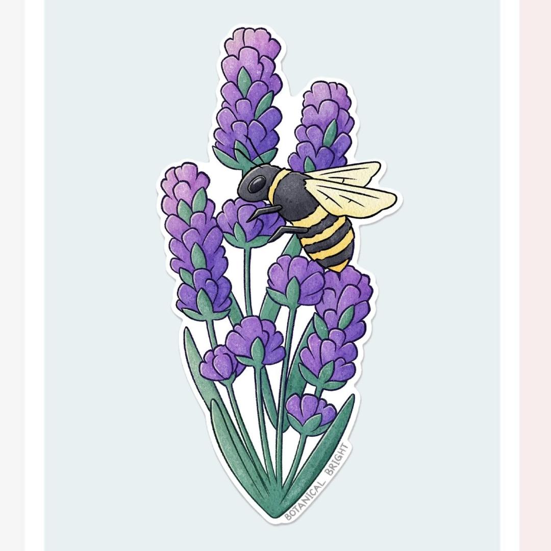 Bee and Lavender Flower Sticker - Waterproof Vinyl Nature, Floral, & Garden Decal