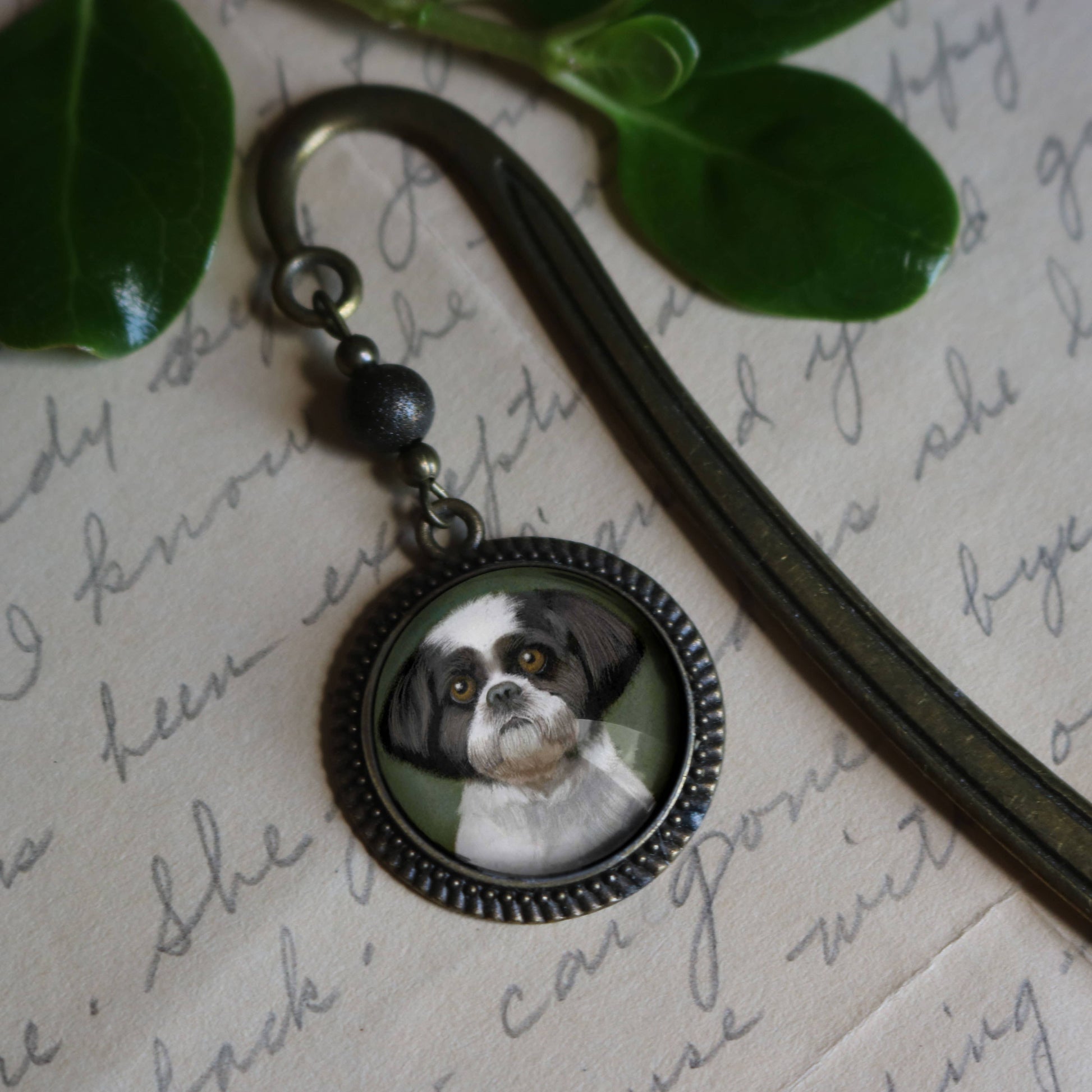 Shitzu Dog Bookmark - "Best Friends" - Bronze and Glass Cabochon Book Hook