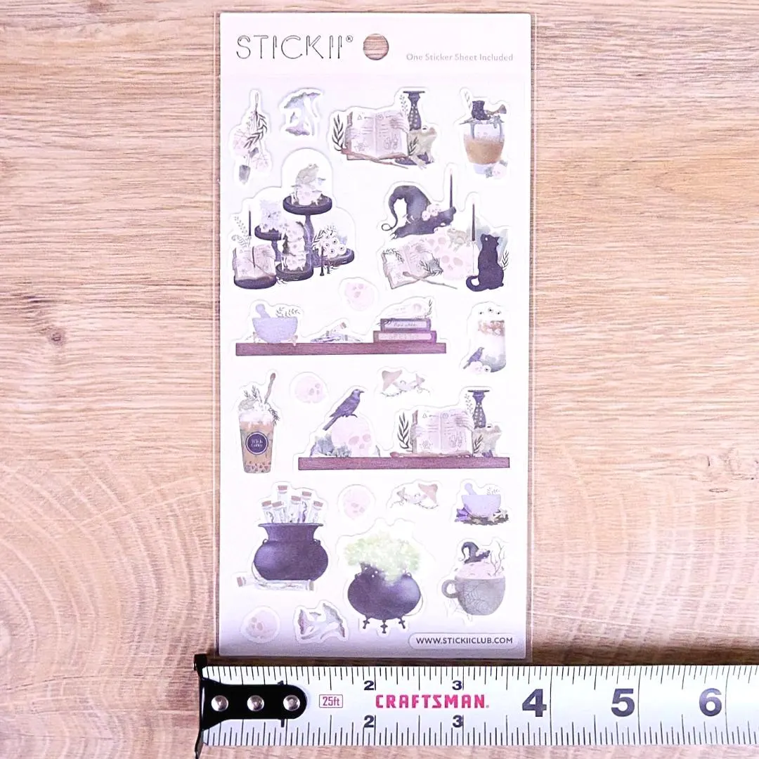 A true witch's home isn't complete without some spellbindingly spooky decor! From bones to crows to potions, this sheet includes everything you need to create the perfect ambiance for all your witchy sticker needs.
