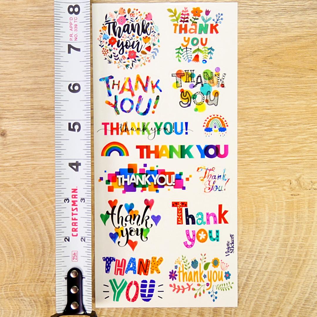 Thank You Stickers - Rainbow Colorful Sticker Sheets