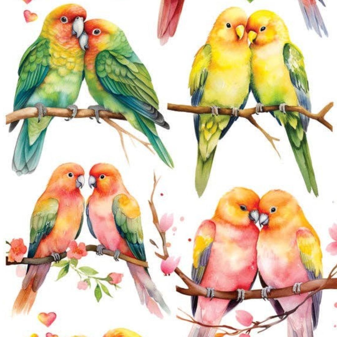 Lovebird couples with hearts. Perfect for Valentine's Day box decorating and Valentine's Day cards. Beautiful colors and die-cuts.