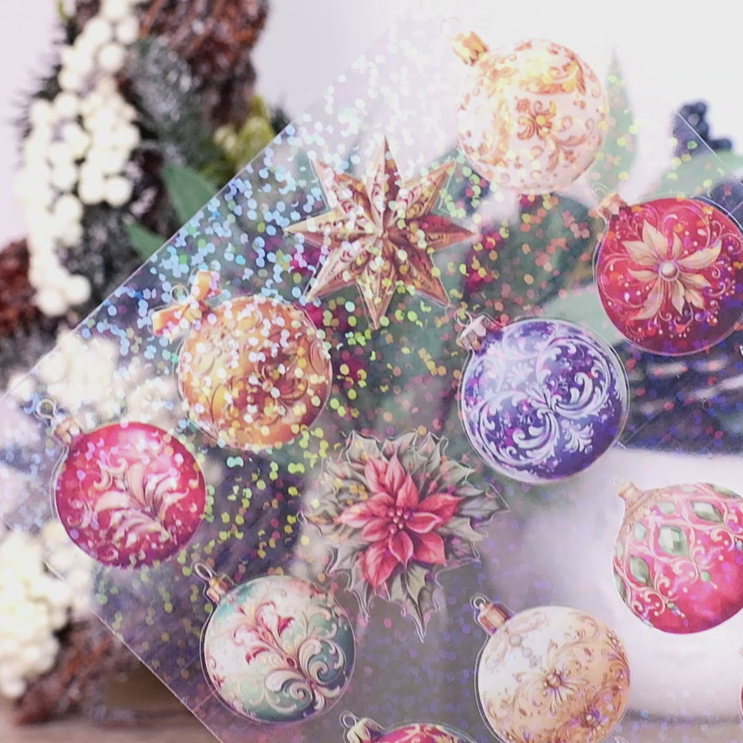 Beautiful sparkling Christmas Ornament stickers in a crystalline holographic sparkle finish.