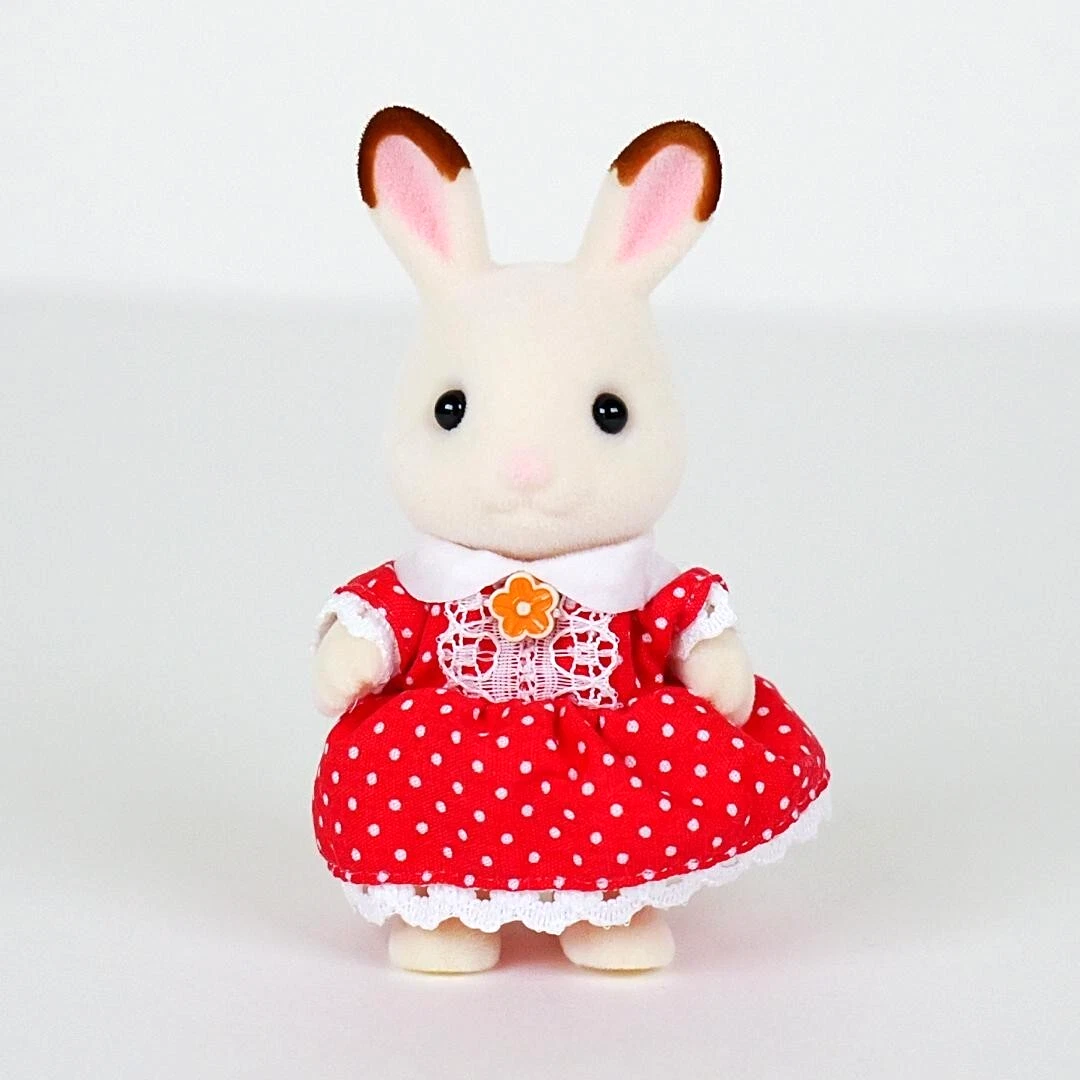 This listing is for a like new, single Chocolate Rabbit Sister named Freya. Freya measures approximately 2.25" inches tall and is posable. She is wearing a beautiful, red vintage dress. Freya does have a spot of ruffled fur on the back of her head from being in the box.