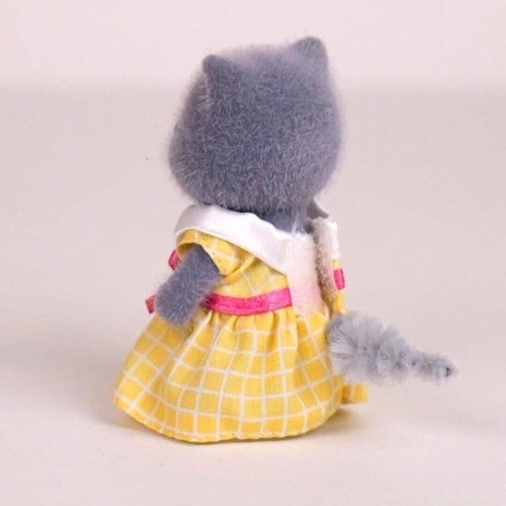 This listing is for a like new, single gray Calico Critters Persian Cat Sister named Skye. Skye measures approximately 2.25" inches tall and is posable. She is wearing a cute yellow dress that is removeable. Skye is made of a fluffy flocked material and has a fluffy tail.
