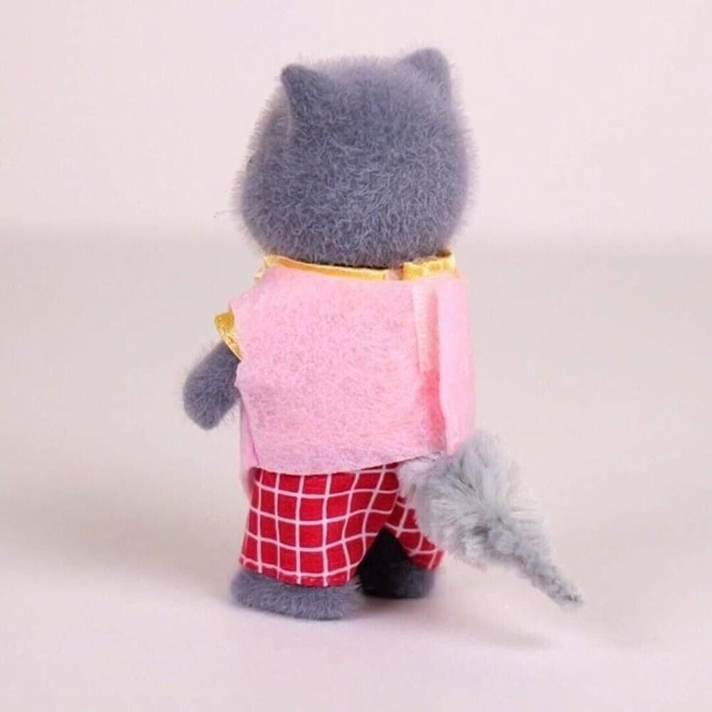 This listing is for a like new, single gray Calico Critters Persian Cat Father named Lucas. Lucas measures approximately 3" inches tall and is posable. He is wearing a dapper vest and outfit that is removeable. Lucas is made of a fluffy flocked material and has a fluffy tail.