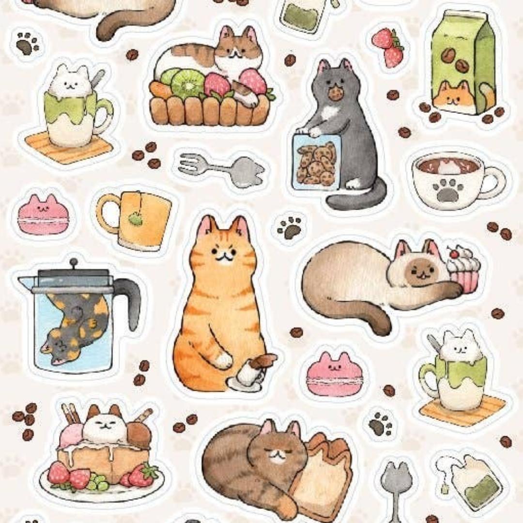Cat Stickers - Kitten Cafe Treats Sticker Sheet
