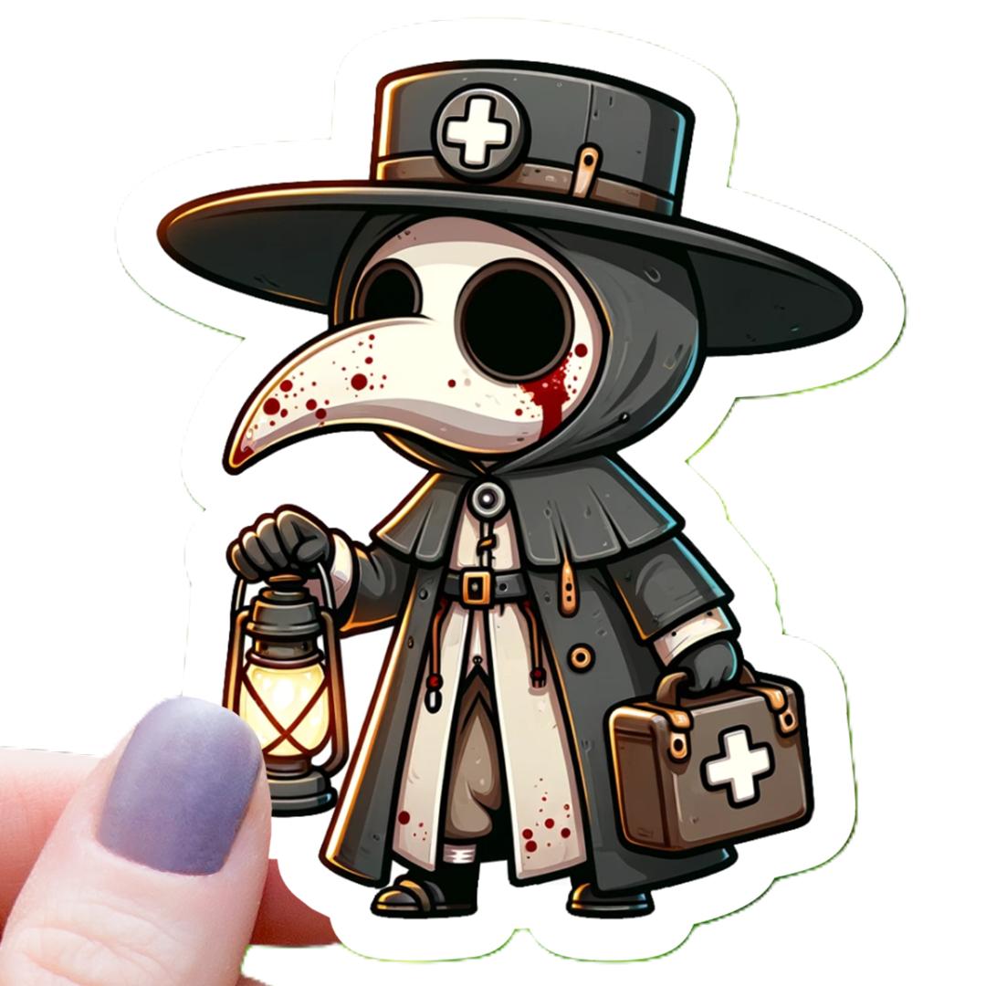 Chibi Plague Doctor with Lantern Sticker - 3" Waterproof Vinyl Sticker