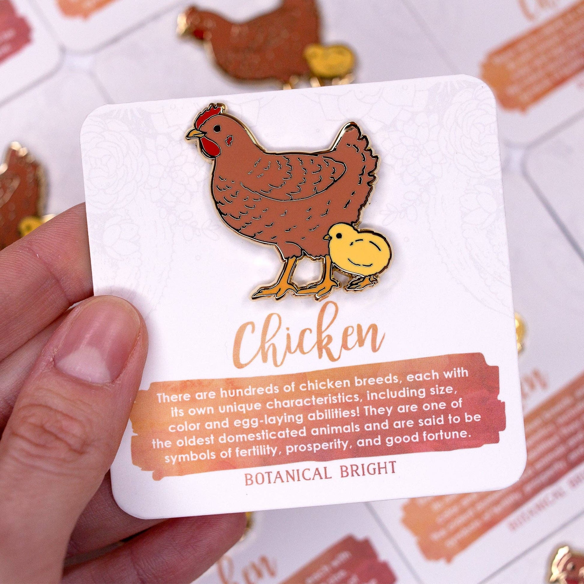 Chicken & Chick Bird Enamel Pin - Gold Plated Farm Animal Jewelry