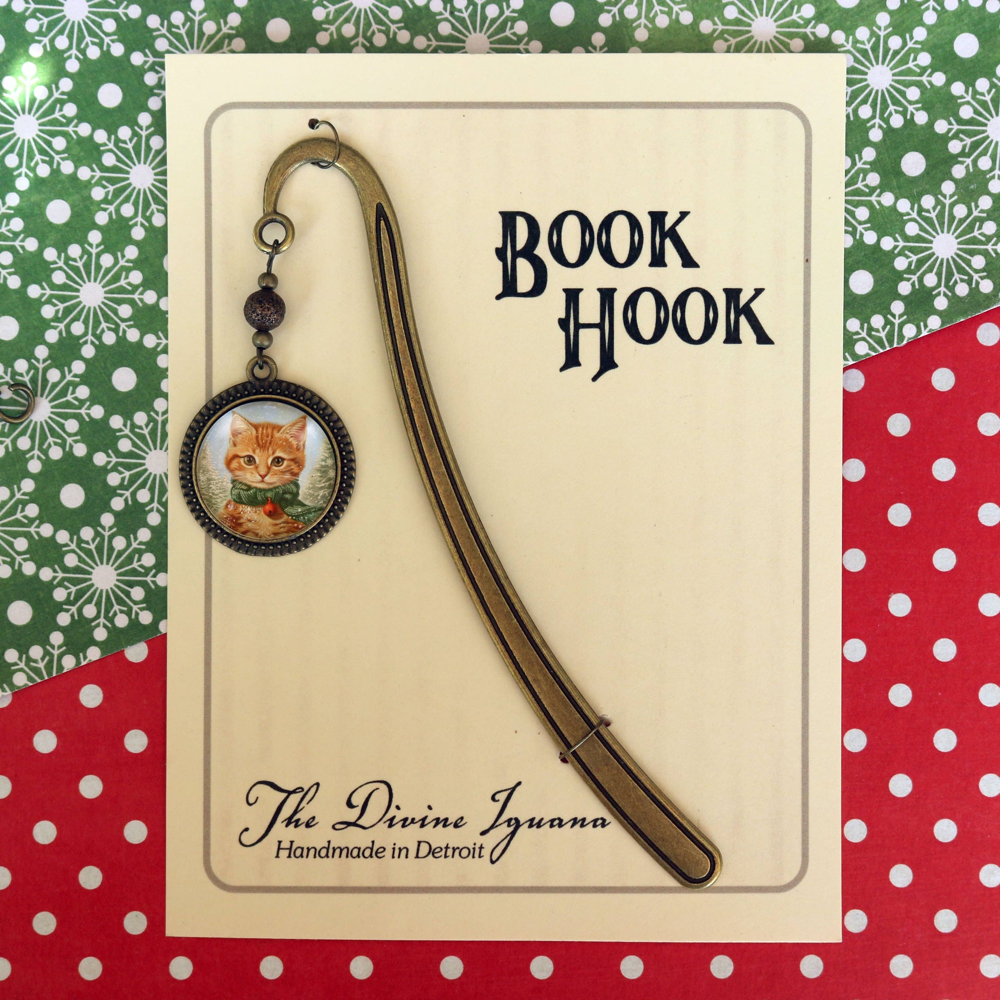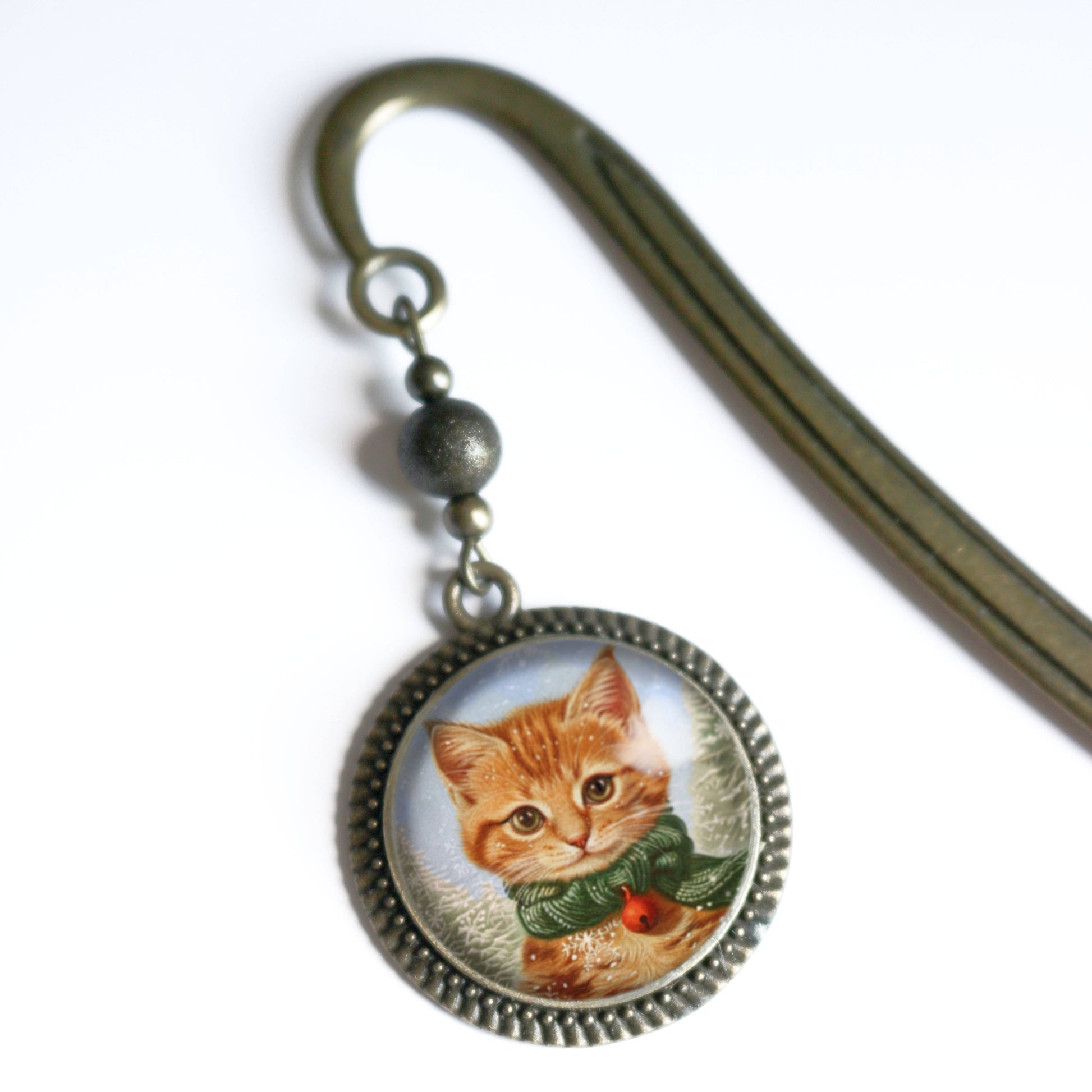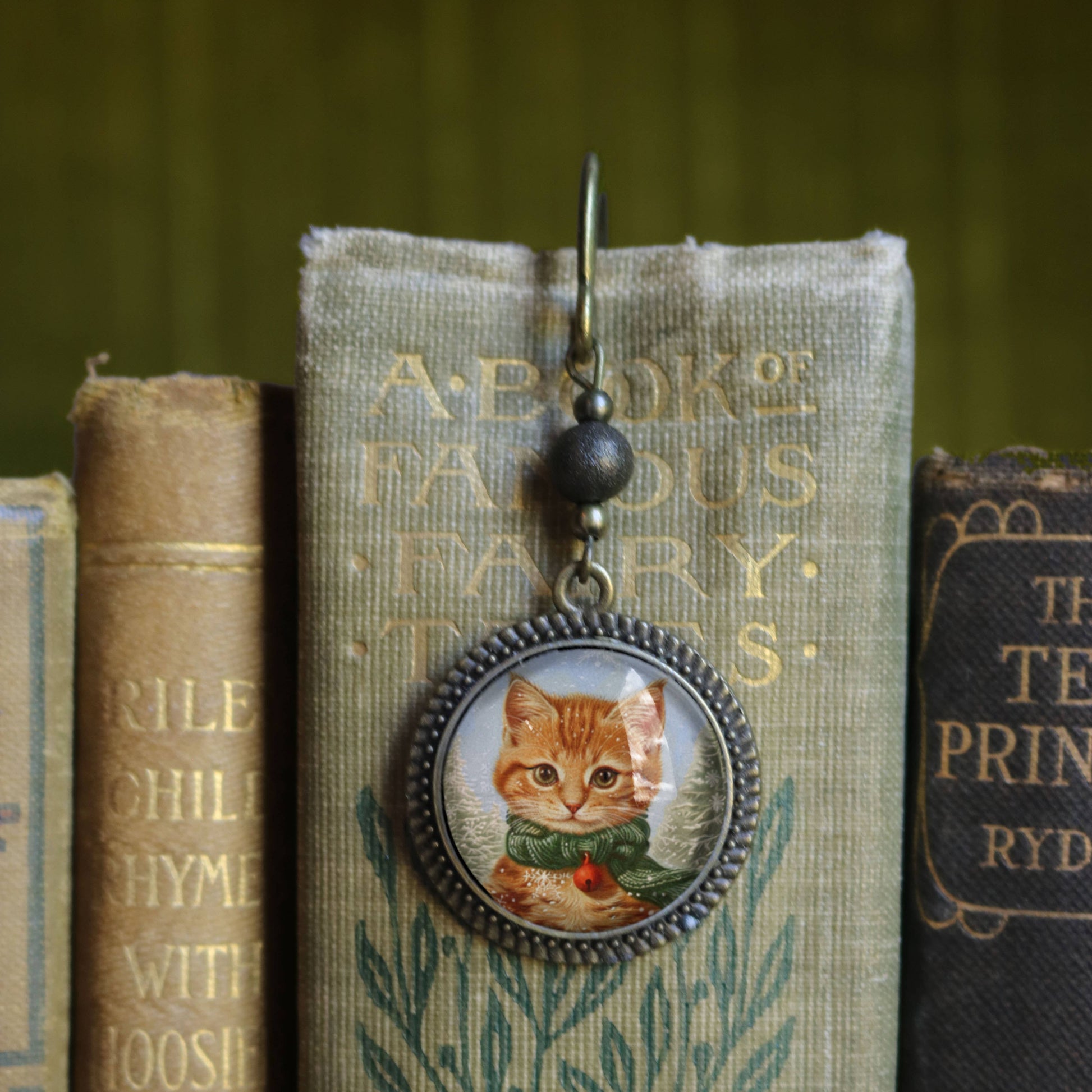 Orange Tabby Cat Bookmark - Christmas - Bronze and Glass Cabochon