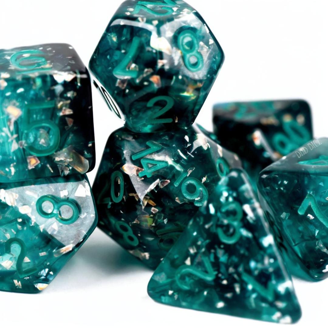DND Dice Set - Color Spray Cyan - 7 Resin Dice - Fantasy RPG Tabletop Gaming