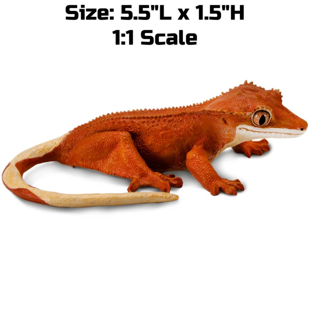 Characteristics: This Crested Gecko reflects the orange coloration often seen on wild geckos, with cream coloration on the underside and tail. Done in a 1:1 scale, this Crested Gecko toy is the same size as the real deal. Tons of sculpting and painting detail have been put into every aspect of this accurate figurine, from the eyes to the toes to the individual scales.