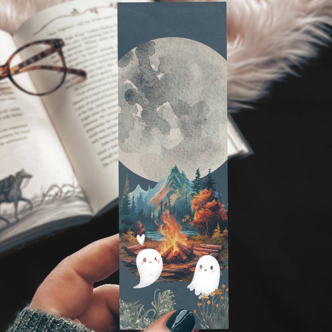 Cute Camping Ghost Couple Watercolor Cardstock Bookmark - Fall & Halloween