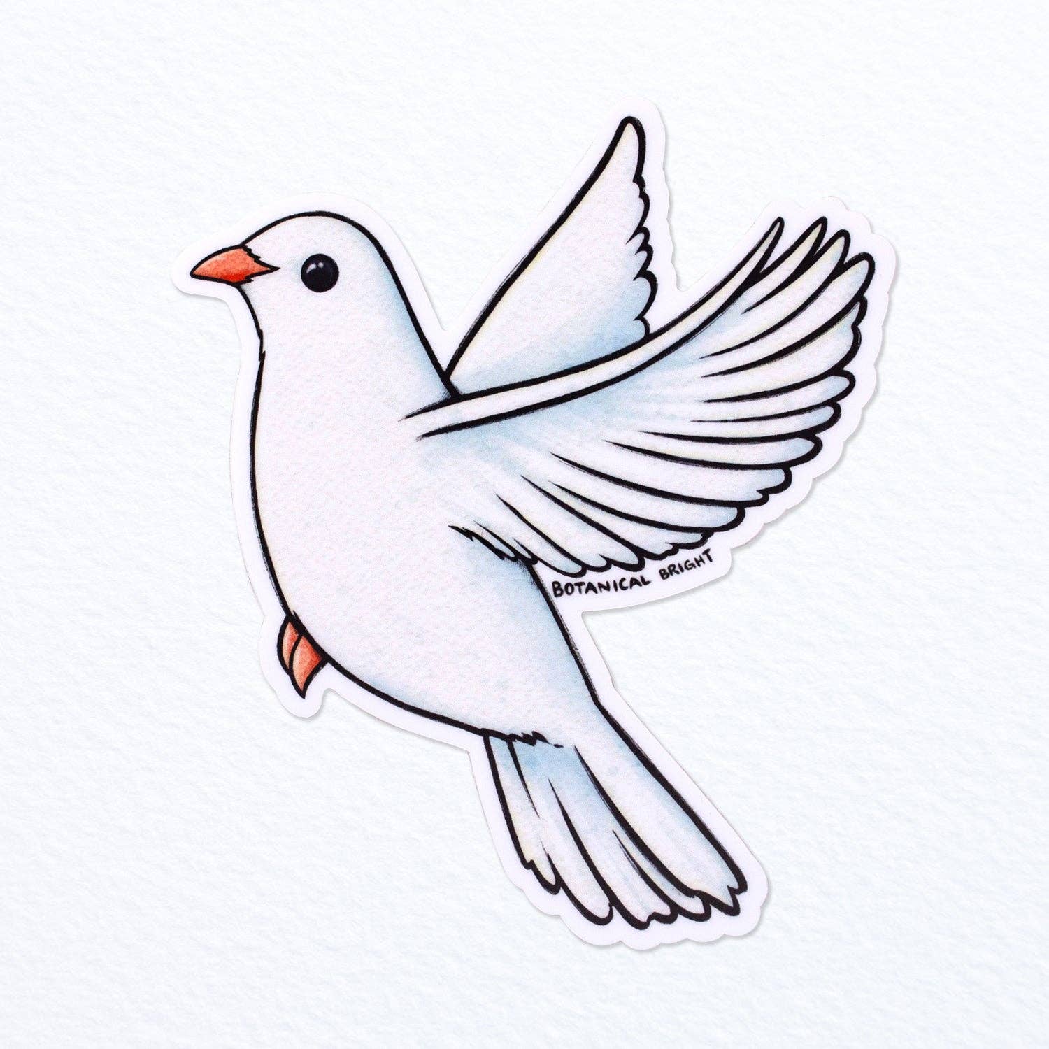 This is a high-quality, large, and well-detailed sticker of a dove. These stickers are made of a vinyl waterproof material and are dishwasher safe. Each sticker measures approximately 3.2" x 3.8" inches.