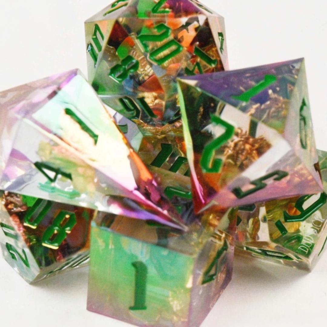 DND Dice Set - Emergence - 7 Handmade Resin Dice - RPG Tabletop Gaming
