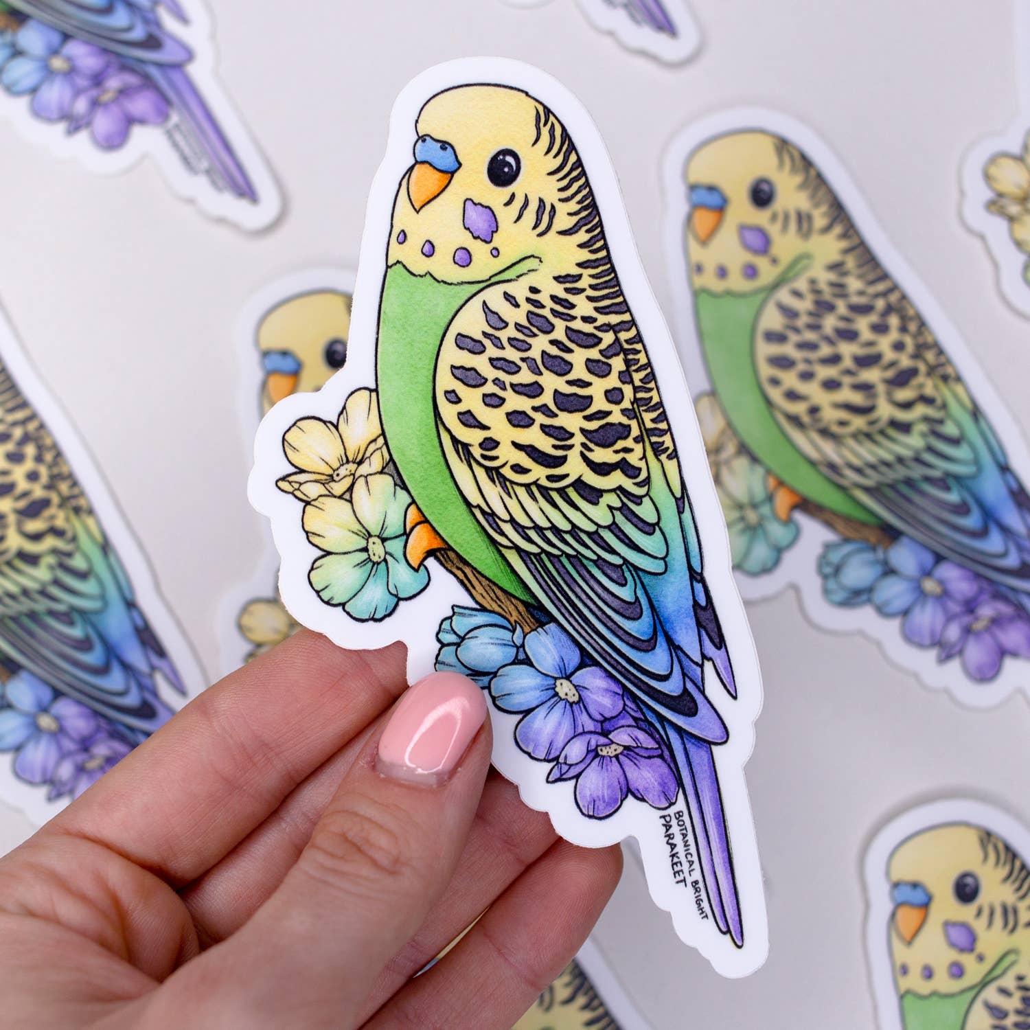 Green Parakeet Budgie Bird Sticker - Waterproof Vinyl