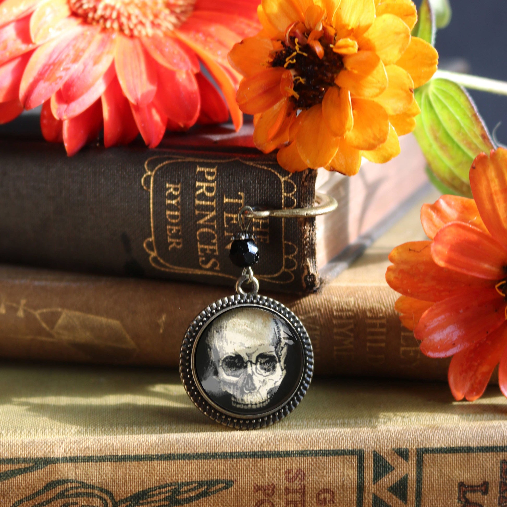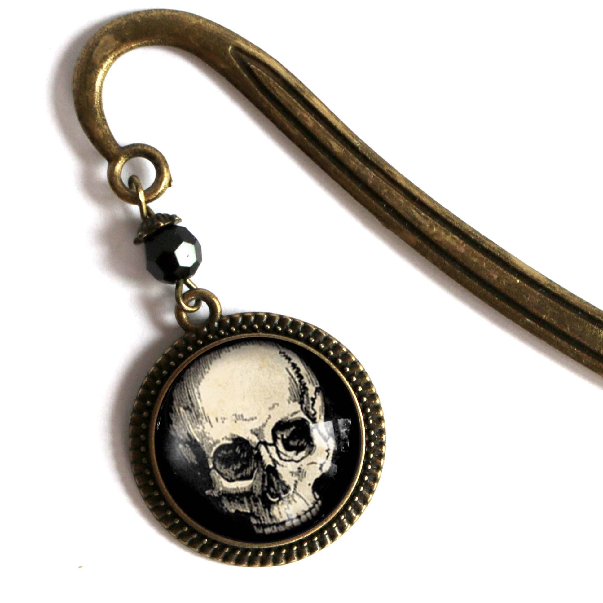 Human Skull Bookmark - Halloween - Bronze and Glass Cabochon