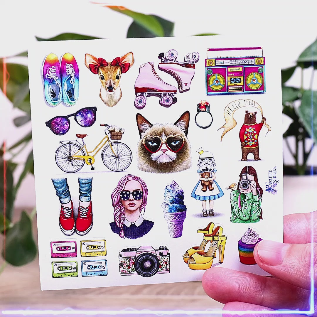 1980s Nostagia Stickers - Retro & Vintage Grumpy Cat Sticker Sheets