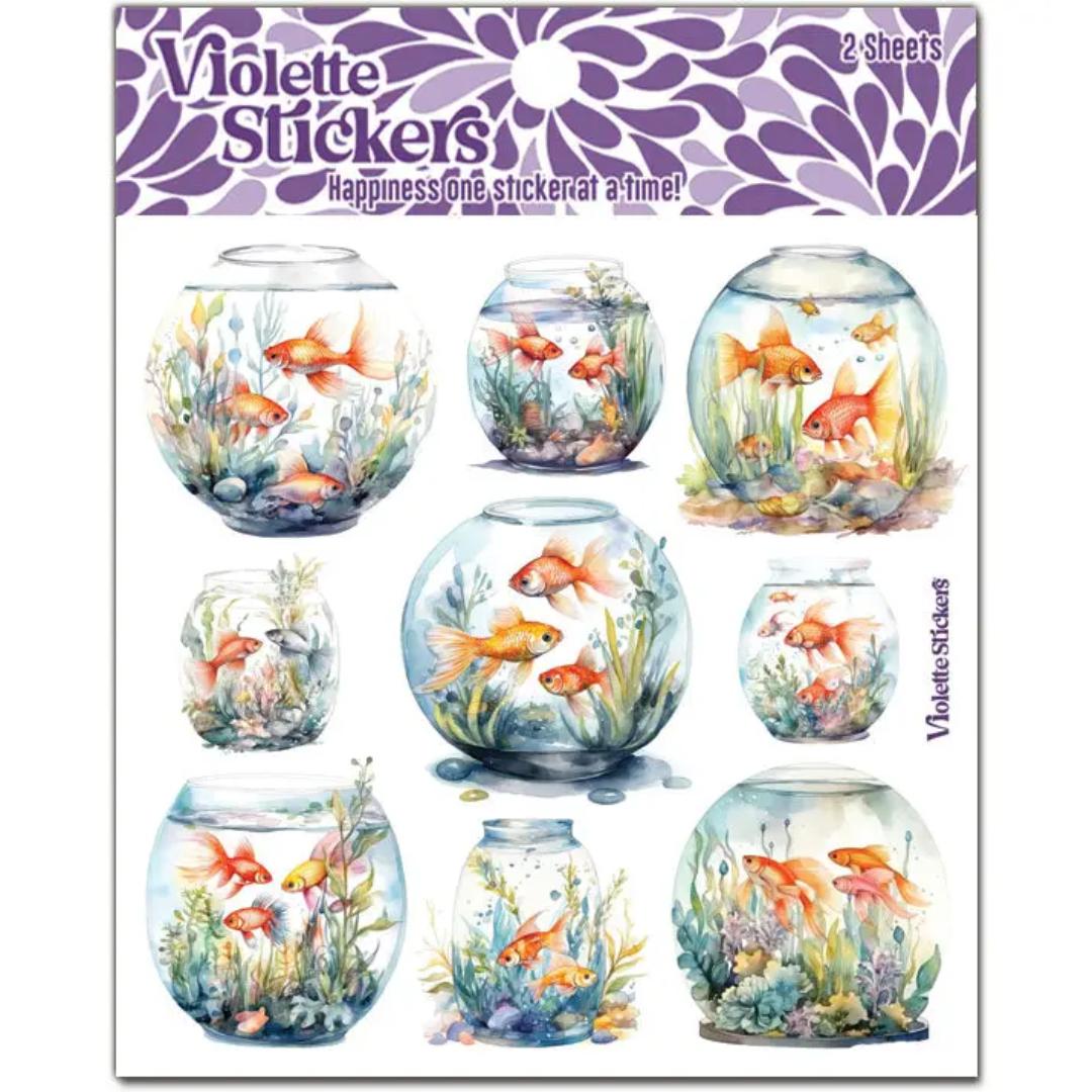 Goldfish Bowl Stickers - 2 Sticker Sheets - Stationary - Scrapbook