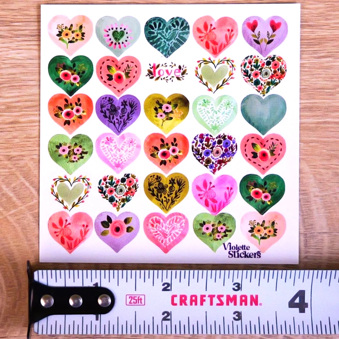 Country Heart Stickers - Flower Hearts Sticker Sheets
