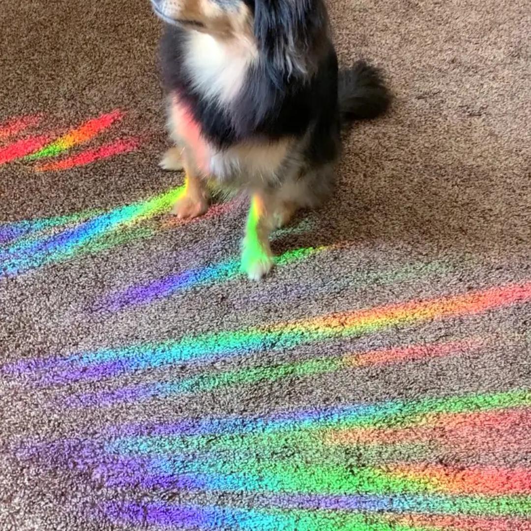 Designed to be applied to an indoor window so when the sun shines through it, it fills your home with rainbows! Not suitable for outside or car windows.