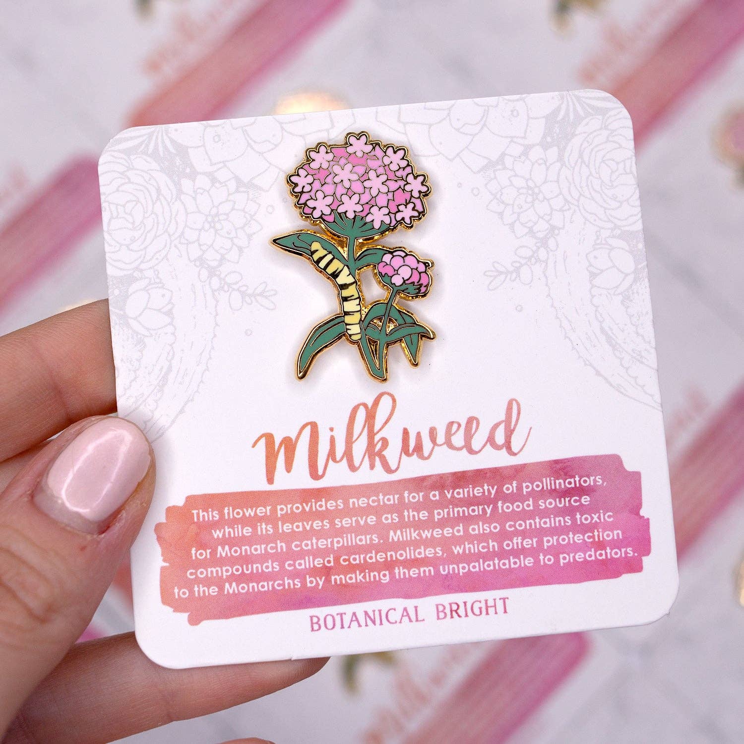 Milkweed & Monarch Caterpillar Enamel Pin - Gold Plated Nature Jewelry